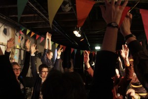 Martijn Engelbregt houdt een stiltemeditatie onder het publiek van Veenproef XL 2 dec jl.